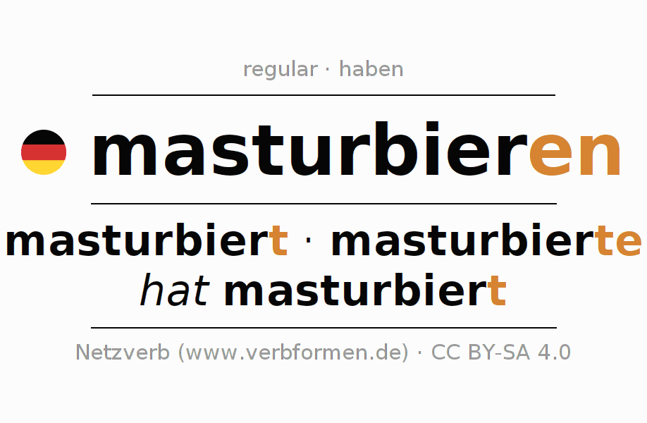 El verbo masturbieren, conjugado completamente en todas las personas y números gramaticales en Infinitivo Presente Pasado perfecto.
