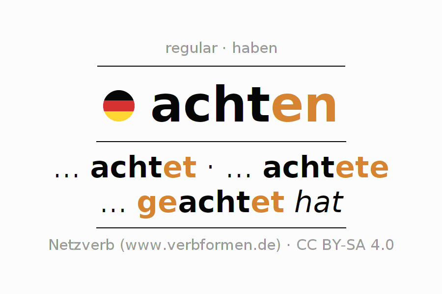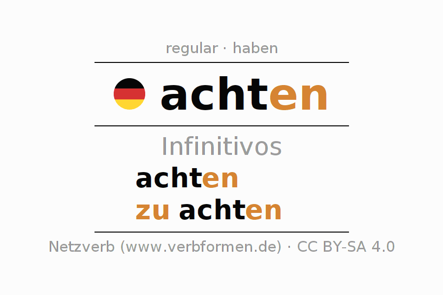 El verbo achten, conjugado completamente en todas las personas y números gramaticales en Infinitivo Presente Pasado perfecto.