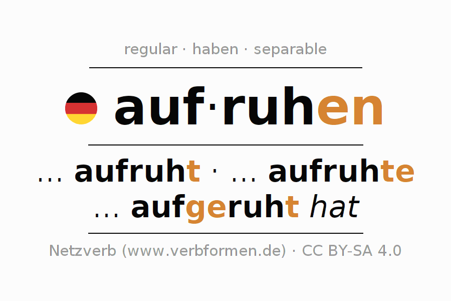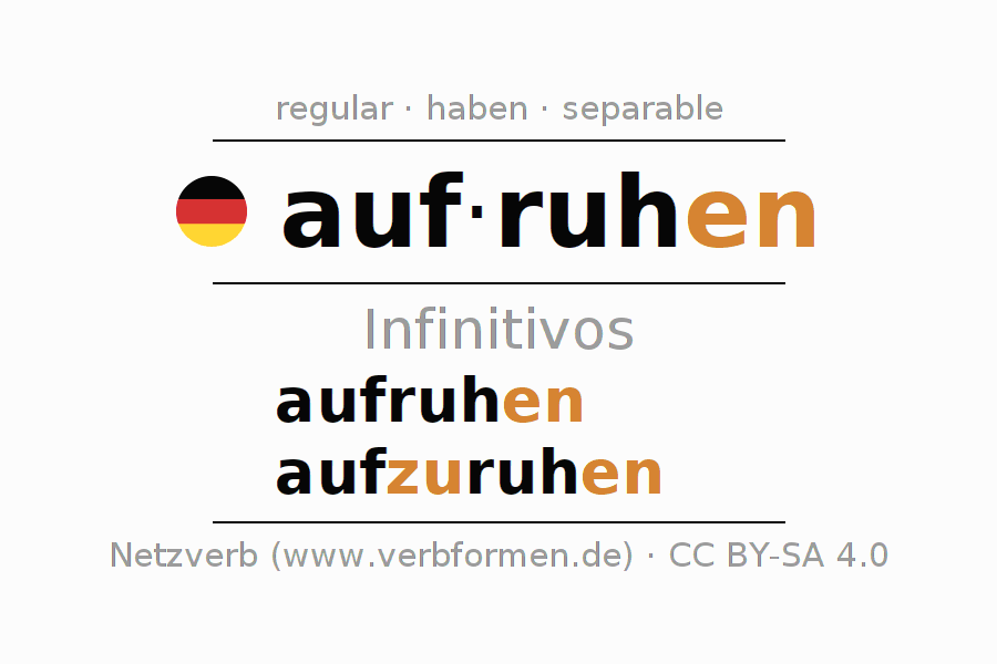 El verbo aufruhen, conjugado completamente en todas las personas y números gramaticales en Infinitivo Presente Pasado perfecto.
