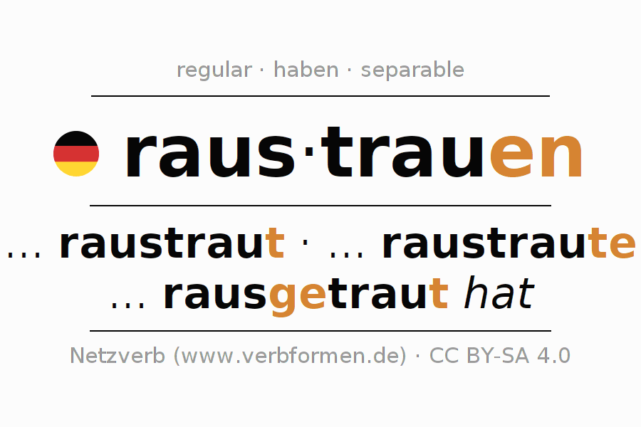 El verbo raustrauen, conjugado completamente en todas las personas y números gramaticales en Infinitivo Presente Pasado perfecto.