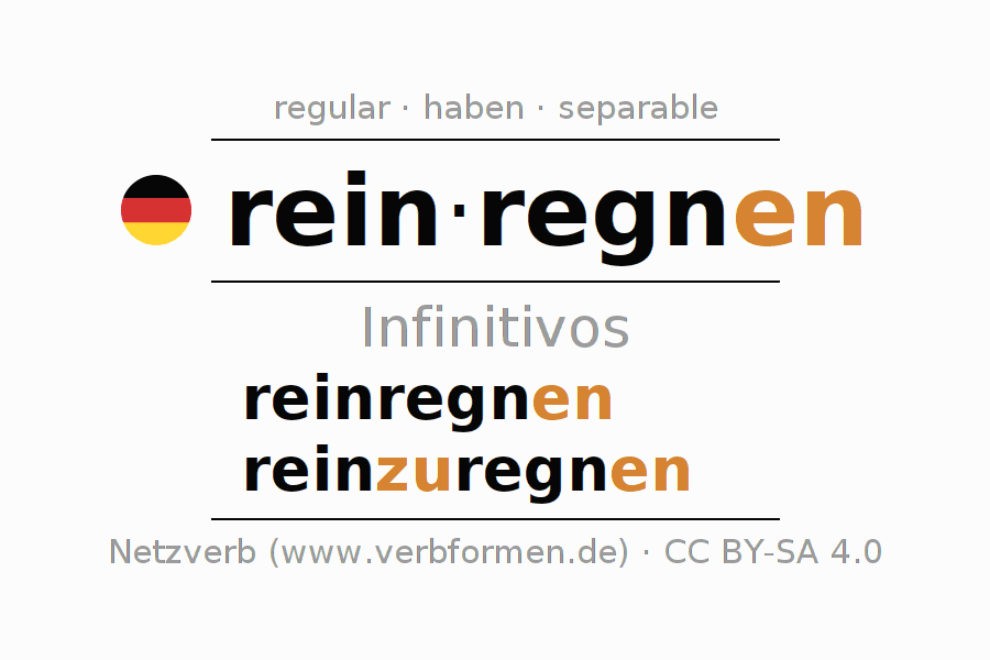 La conjugación de reinregnen en Infinitivo Presente Pasado perfecto forma básica Activo es reinregnen, reinzuregnen.Para construir esta formas se requiere seguir algunas reglas gramaticales y también las especificaciones para la conjugación de verbos simples de reinregnen en Infinitivo . Comentarios ☆