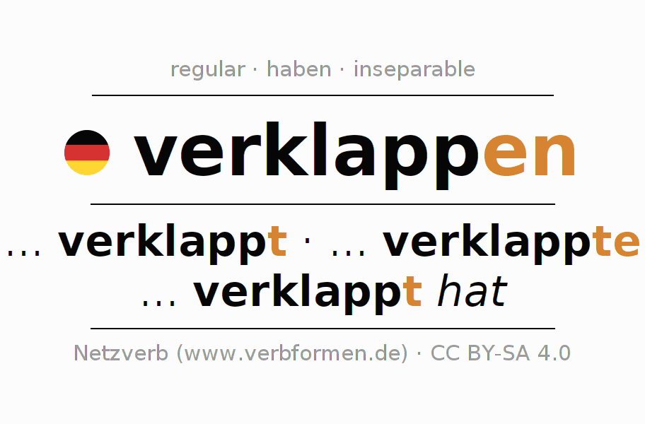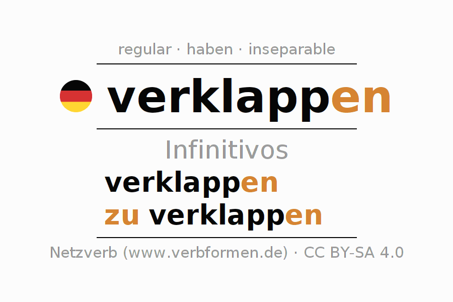 El verbo verklappen, conjugado completamente en todas las personas y números gramaticales en Infinitivo Presente Pasado perfecto.