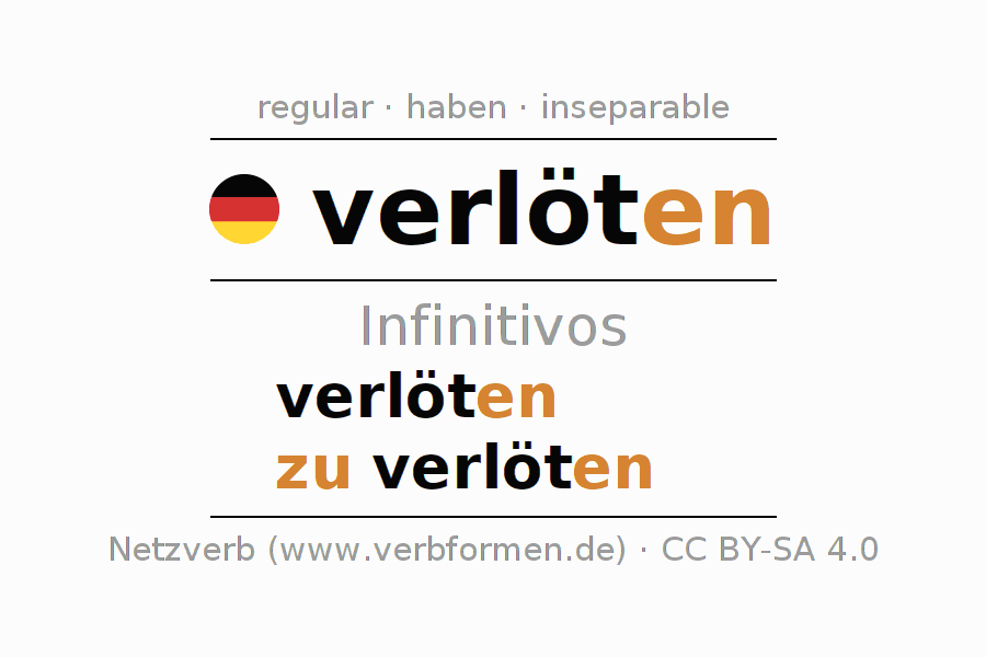 El verbo verlöten, conjugado completamente en todas las personas y números gramaticales en Infinitivo Presente Pasado perfecto.