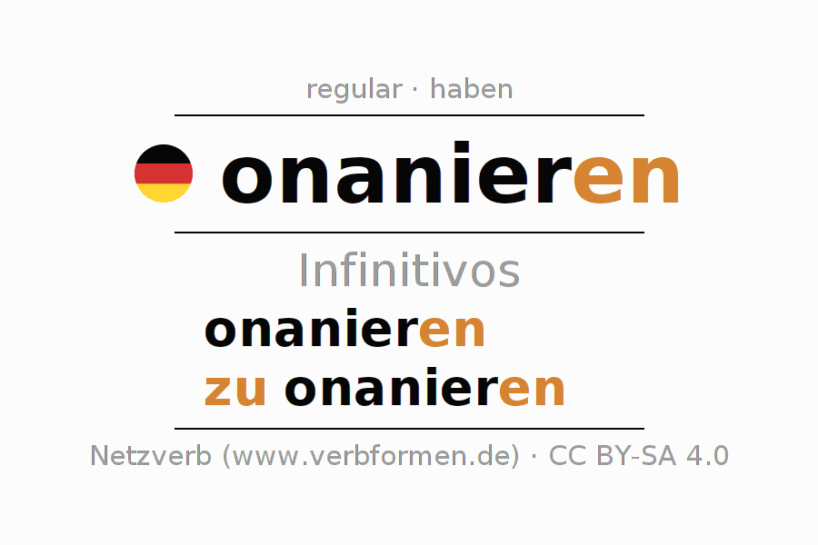 El verbo onanieren, conjugado completamente en todas las personas y números gramaticales en Infinitivo Presente Pasado perfecto.