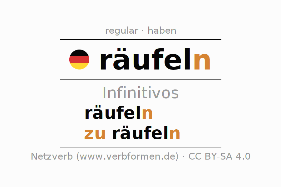 Los infinitivos de räufeln (exasperarse, gritar) son: räufeln, zu räufeln