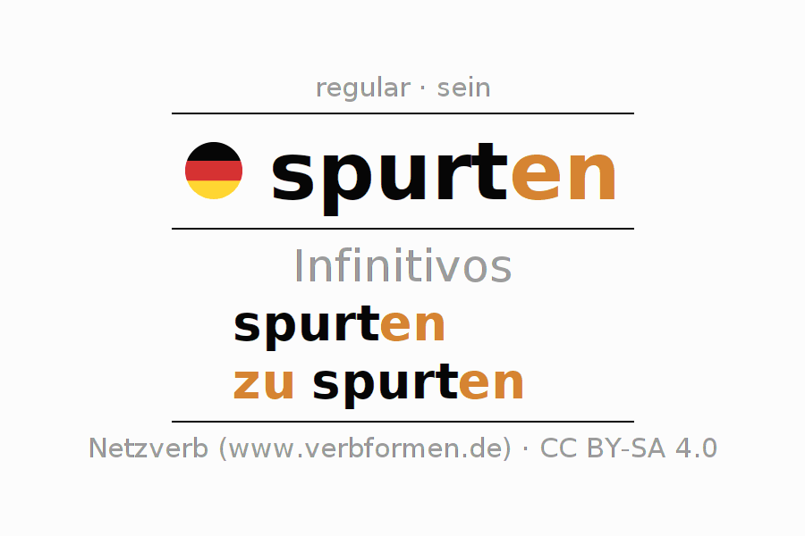 El verbo spurten, conjugado completamente en todas las personas y números gramaticales en Infinitivo Presente Pasado perfecto.