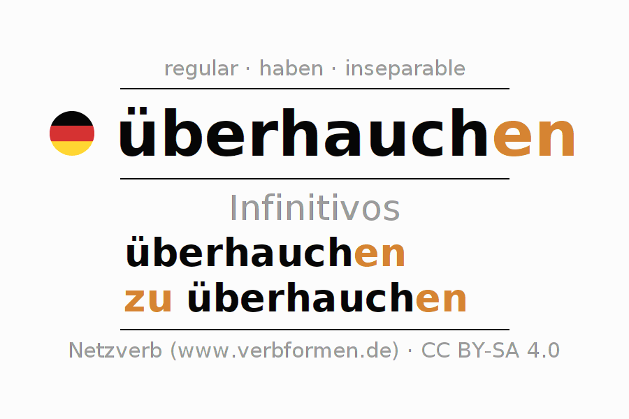 El verbo überhauchen, conjugado completamente en todas las personas y números gramaticales en Infinitivo Presente Pasado perfecto.