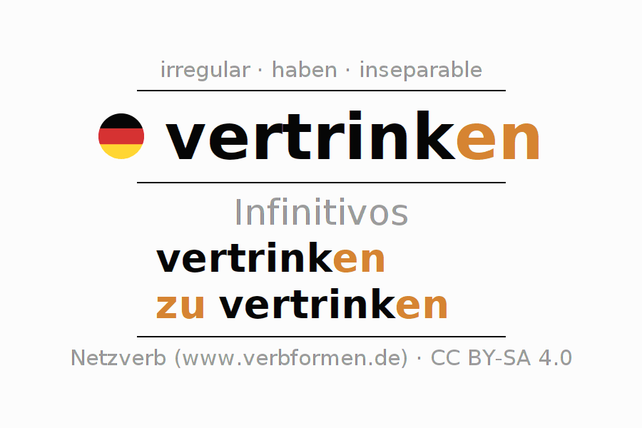 Los infinitivos de vertrinken (ahogar penas, desperdiciar) son: vertrinken, zu vertrinken