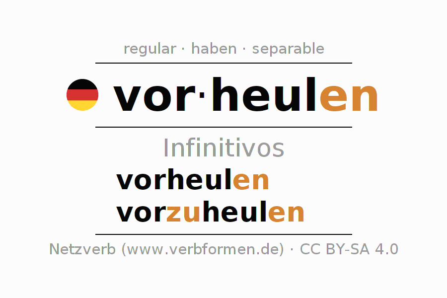 Los infinitivos de vorheulen (llorar, quejarse) son: vorheulen, vorzuheulen
