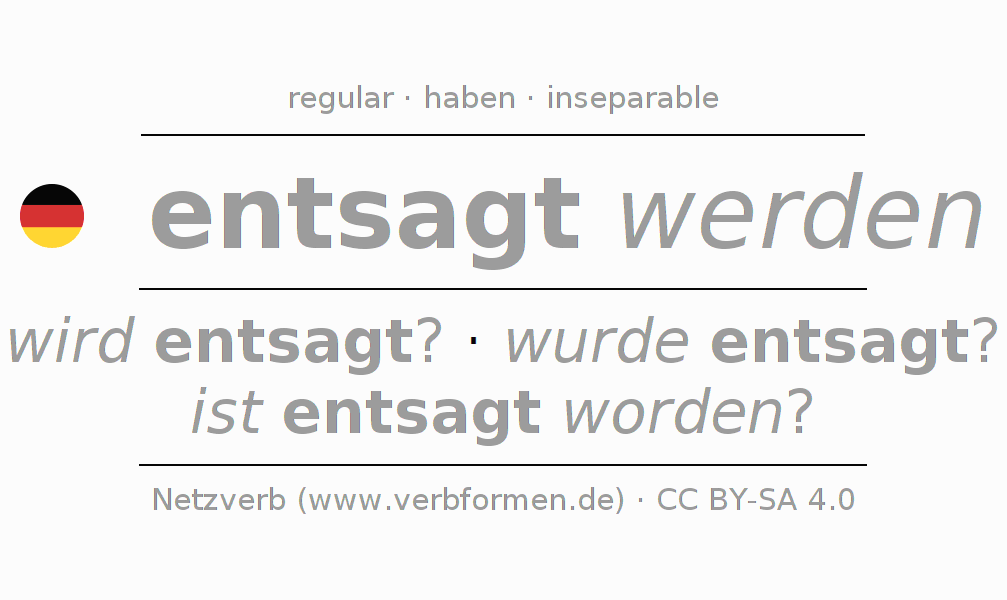 El verbo entsagen, conjugado completamente en todas las personas y números gramaticales en Infinitivo Presente Pasado perfecto.