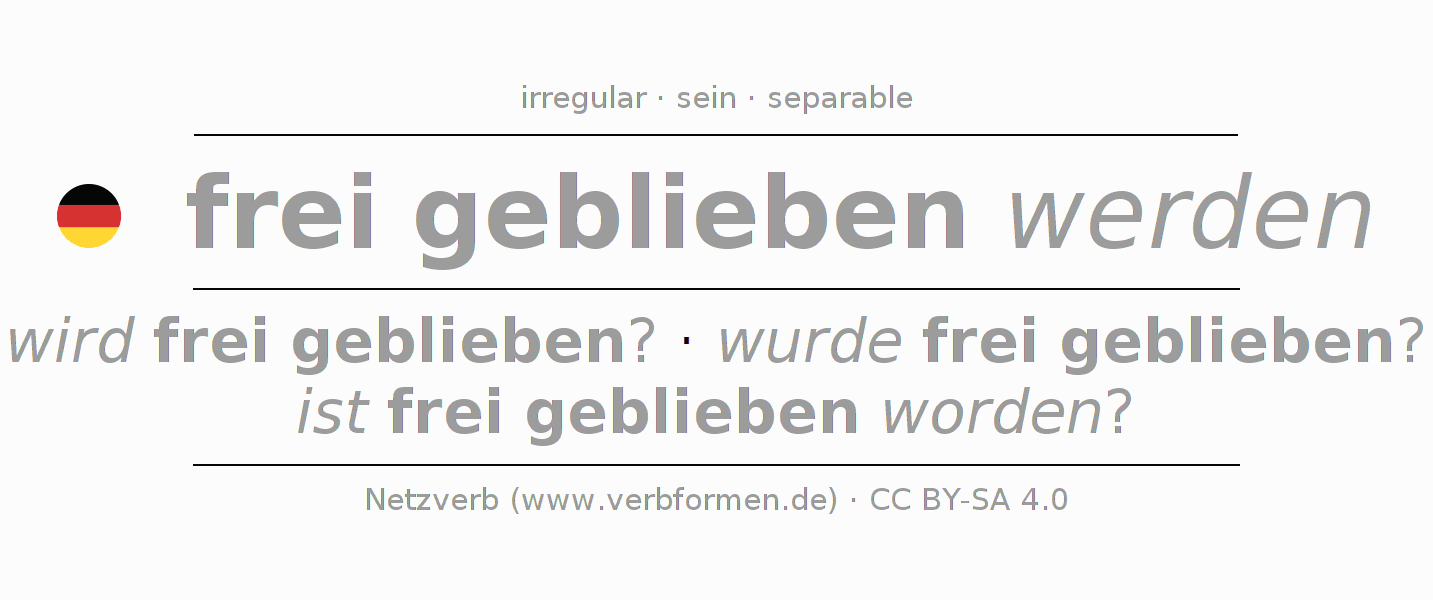 El verbo freibleiben, conjugado completamente en todas las personas y números gramaticales en Infinitivo Presente Pasado perfecto.