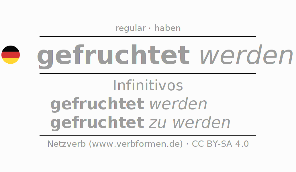 El verbo fruchten, conjugado completamente en todas las personas y números gramaticales en Infinitivo Presente Pasado perfecto.