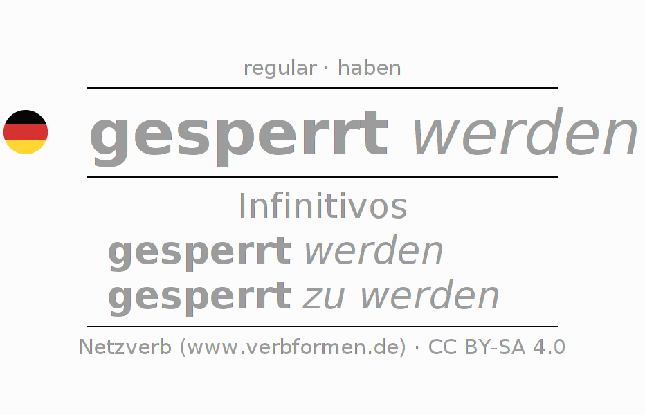 El verbo sperren, conjugado completamente en todas las personas y números gramaticales en Infinitivo Presente Pasado perfecto.