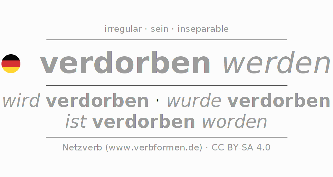 El verbo verderben (ist), conjugado completamente en todas las personas y números gramaticales en Infinitivo Presente Pasado perfecto.