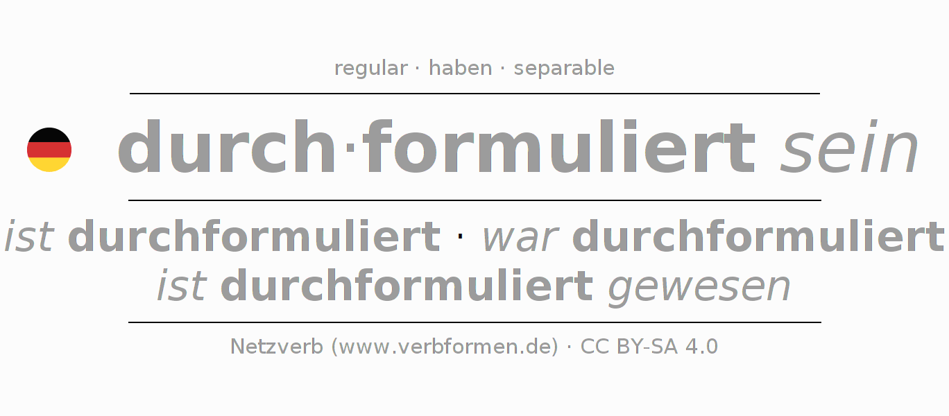 El verbo durchformulieren, conjugado completamente en todas las personas y números gramaticales en Infinitivo Presente Pasado perfecto.
