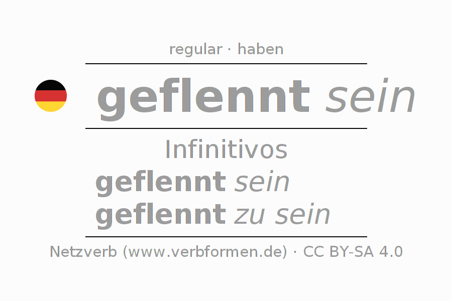 La conjugación de flennen en Infinitivo Presente Pasado perfecto forma básica Pasivo situativo es geflennt sein, geflennt zu sein.Para construir esta formas se requiere seguir algunas reglas gramaticales y también las especificaciones para la conjugación de verbos simples de flennen en Infinitivo . Comentarios ☆