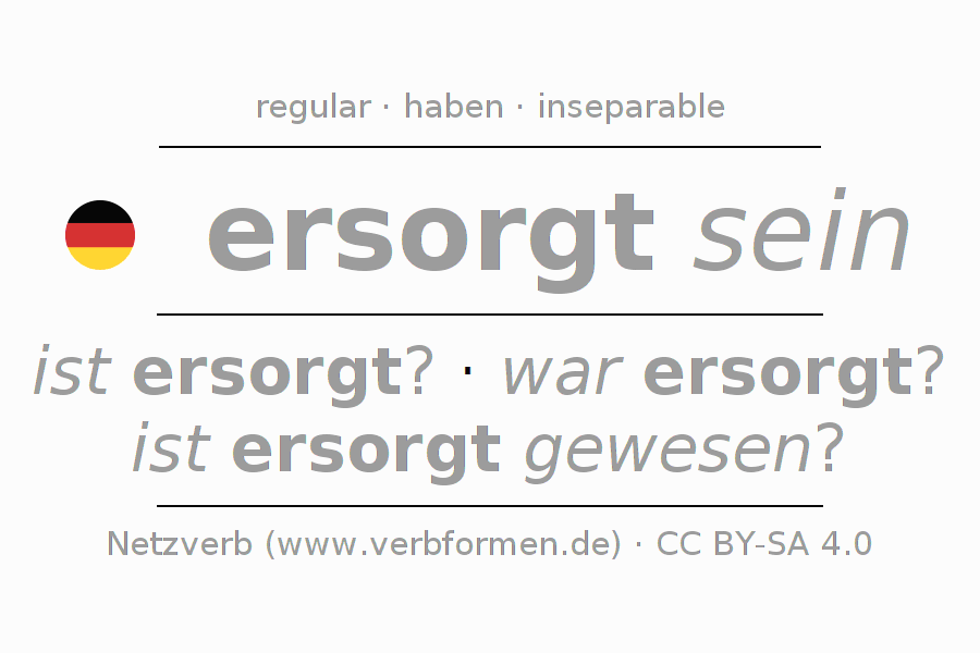 El verbo ersorgen, conjugado completamente en todas las personas y números gramaticales en Infinitivo Presente Pasado perfecto.