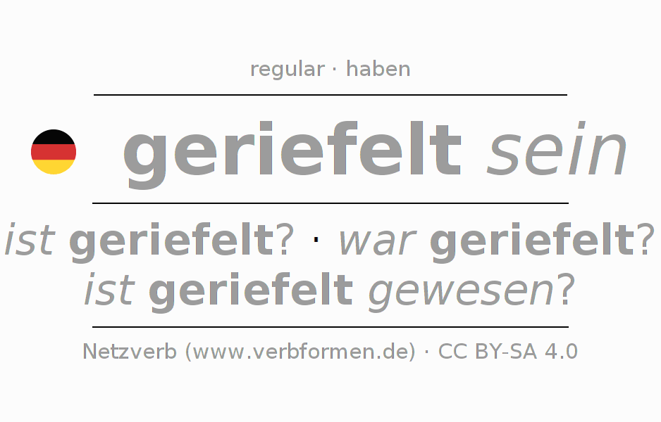 El verbo riefeln, conjugado completamente en todas las personas y números gramaticales en Infinitivo Presente Pasado perfecto.