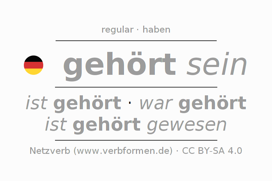 La conjugación de hören en Infinitivo Presente Pasado perfecto forma básica Pasivo situativo es gehört sein, gehört zu sein.Para construir esta formas se requiere seguir algunas reglas gramaticales y también las especificaciones para la conjugación de verbos simples de hören en Infinitivo . Comentarios ☆