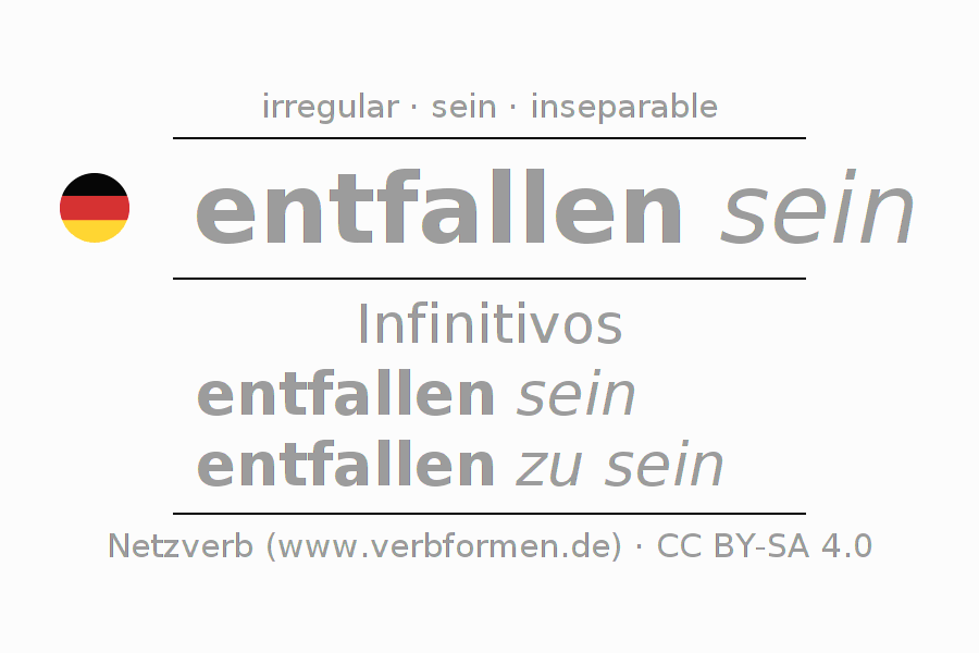 El verbo entfallen, conjugado completamente en todas las personas y números gramaticales en Infinitivo Presente Pasado perfecto.