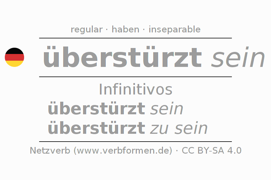 El verbo überstürzen, conjugado completamente en todas las personas y números gramaticales en Infinitivo Presente Pasado perfecto.
