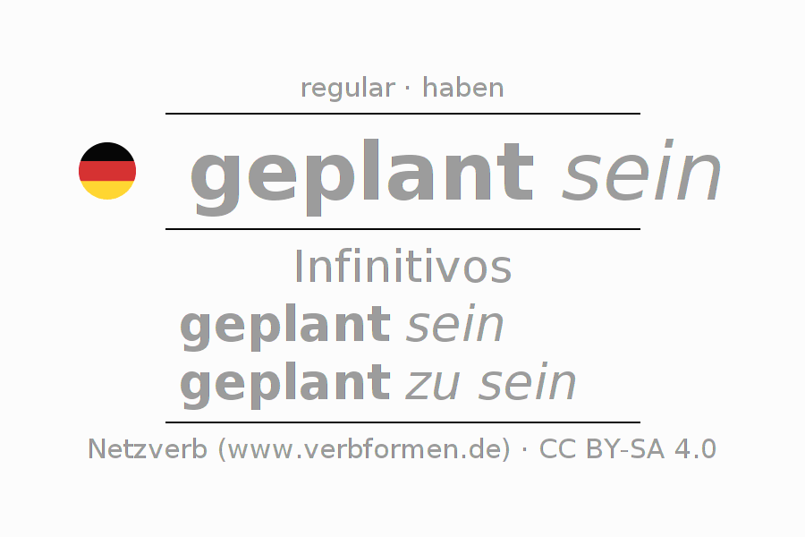 La conjugación de planen en Infinitivo Presente Pasado perfecto forma básica Pasivo situativo es geplant sein, geplant zu sein.Para construir esta formas se requiere seguir algunas reglas gramaticales y también las especificaciones para la conjugación de verbos simples de planen en Infinitivo . Comentarios ☆