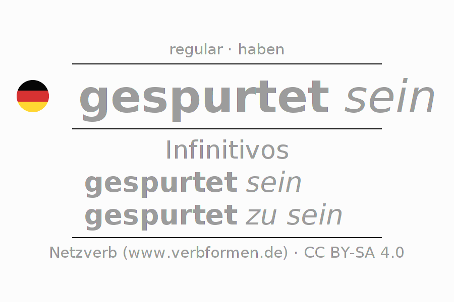 El verbo spurten (hat), conjugado completamente en todas las personas y números gramaticales en Infinitivo Presente Pasado perfecto.