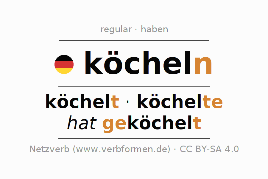 - Pasado perfecto: ich habe geköchelt, du habest geköchelt, er habe geköchelt, wir haben geköchelt, ihr habet geköchelt, sie haben geköchelt