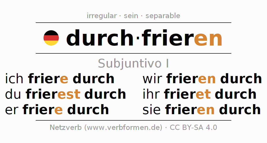 El verbo durchfrieren, conjugado completamente en todas las personas y números gramaticales en Subjuntivo Presente.