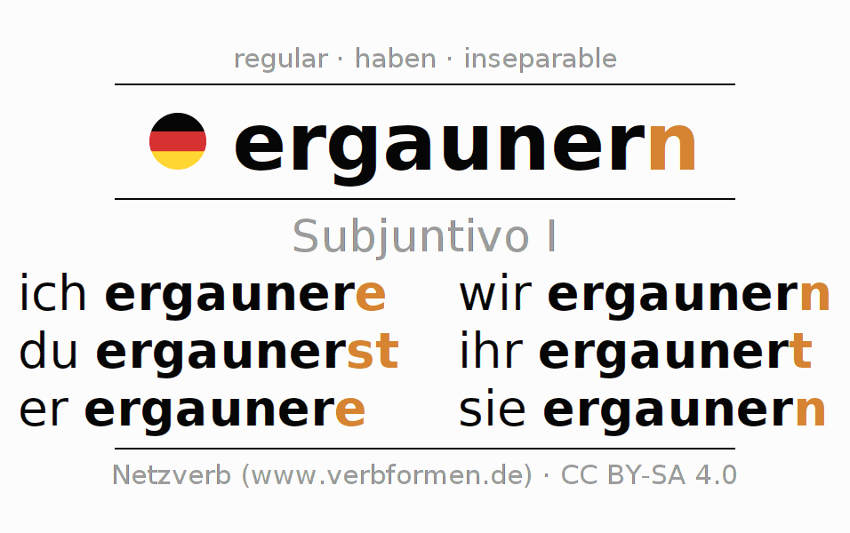 Este verbo ergaunern (estafar, defraudar) se conjuga en subjuntivo I de la siguiente manera: ich ergaun(e)re, du ergaunerst, er ergaun(e)re, wir ergaunern, ihr ergaunert, sie ergaunern
