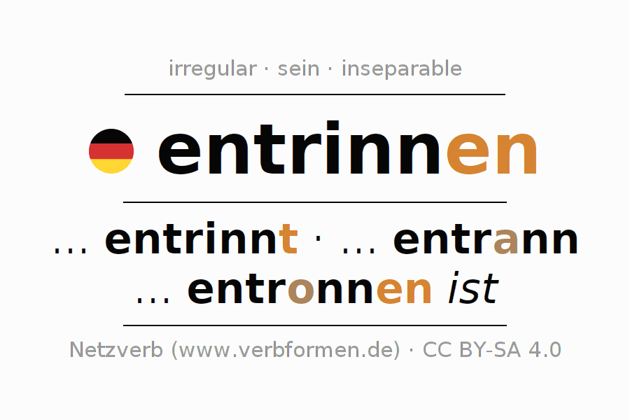 La conjugación de entrinnen en Subjuntivo Presente Subjuntivo Activo es ... ich entrinne, ... du entrinnest, ... er entrinne, ... wir entrinnen, ... ihr entrinnet, ... sie entrinnen.Para construir esta formas se requiere seguir algunas reglas gramaticales y también las especificaciones para la conjugación de verbos simples de entrinnen en Subjuntivo I . Comentarios ☆