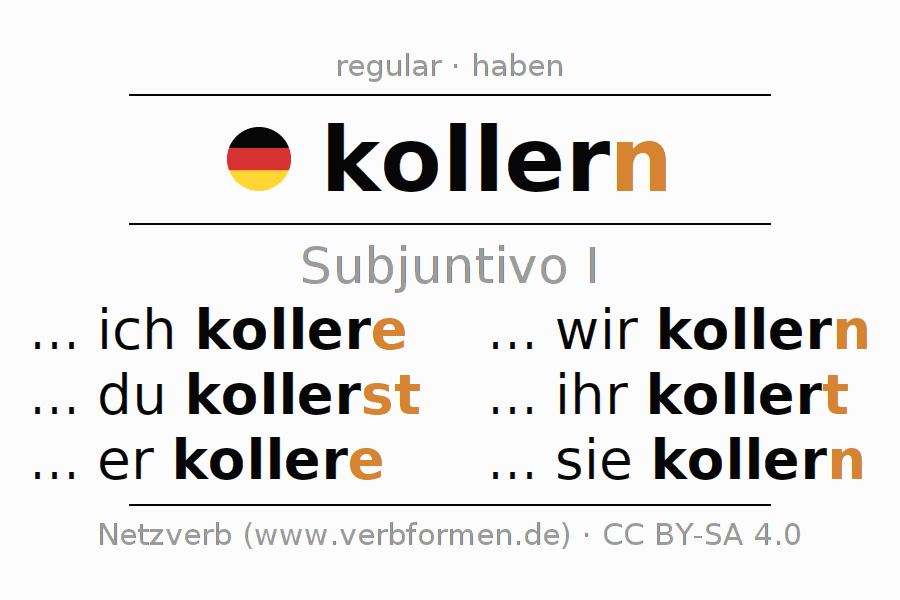 El verbo kollern (hat), conjugado completamente en todas las personas y números gramaticales en Subjuntivo Presente.