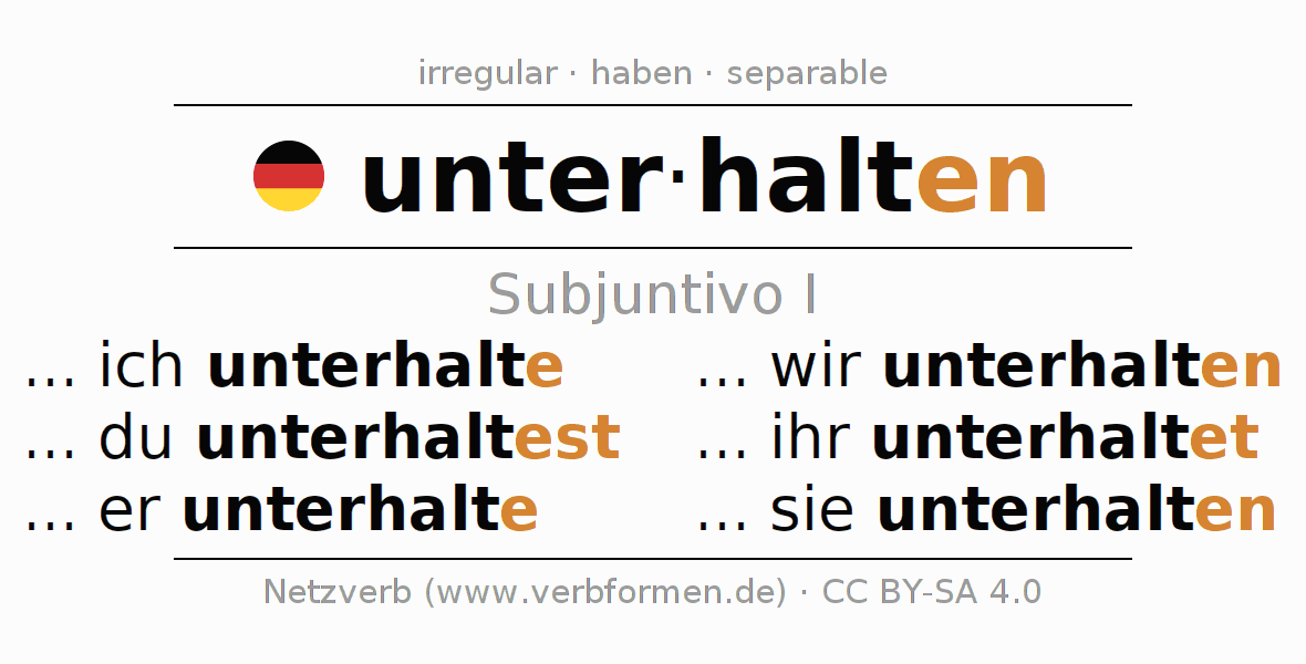 El verbo unter-halten, conjugado completamente en todas las personas y números gramaticales en Subjuntivo Presente.