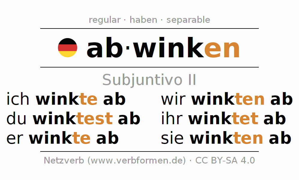El verbo abwinken, conjugado completamente en todas las personas y números gramaticales en Subjuntivo Pretérito.