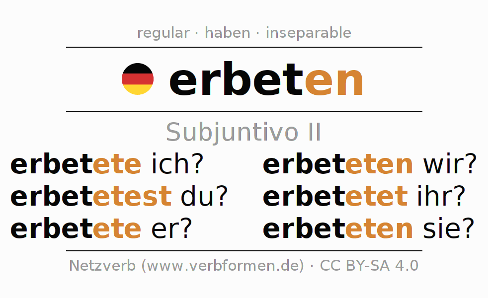 - ¿Cómo se conjuga erbeten en Infinitivo?