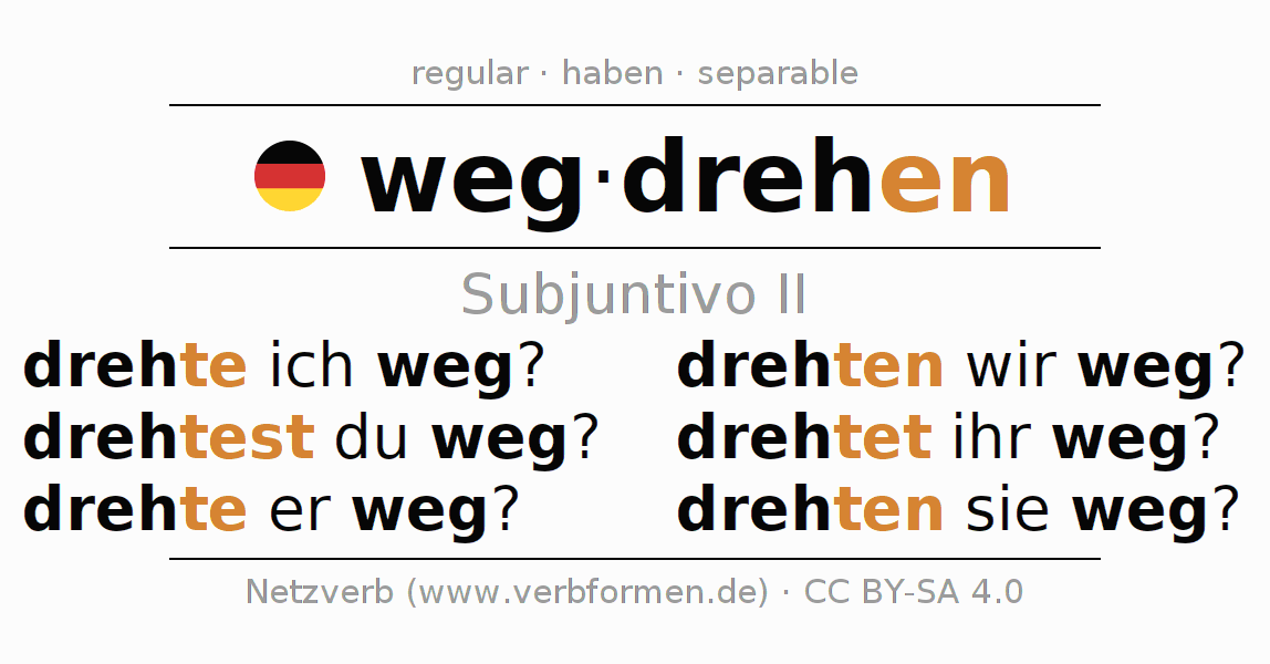El verbo wegdrehen, conjugado completamente en todas las personas y números gramaticales en Subjuntivo Pretérito.