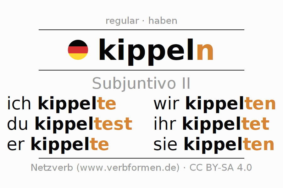 El verbo kippeln, conjugado completamente en todas las personas y números gramaticales en Subjuntivo Pretérito.
