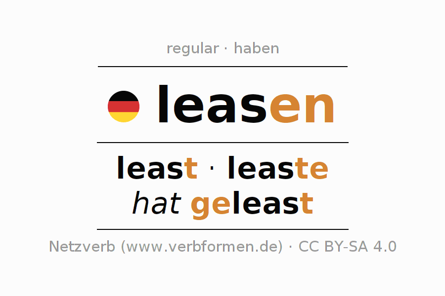 Este verbo leasen (alquilar, arrendar) se conjuga en subjuntivo II de la siguiente manera: ich leaste, du leastest, er leaste, wir leasten, ihr leastet, sie leasten