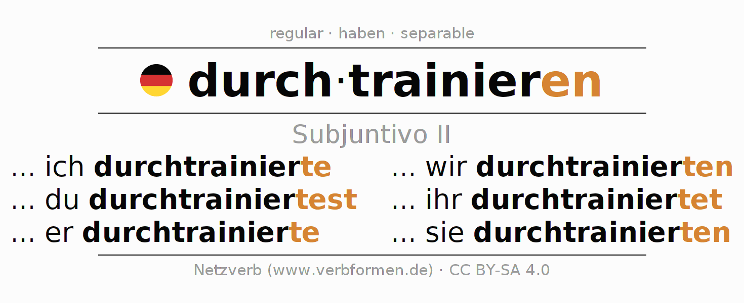 El verbo durchtrainieren, conjugado completamente en todas las personas y números gramaticales en Subjuntivo Pretérito.