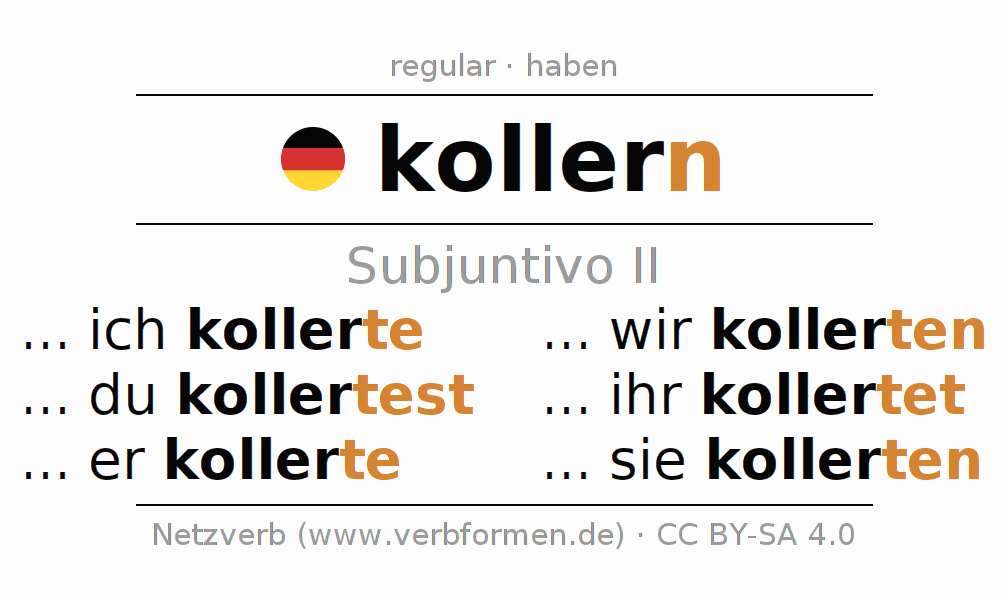 El verbo kollern (hat), conjugado completamente en todas las personas y números gramaticales en Subjuntivo Pretérito.