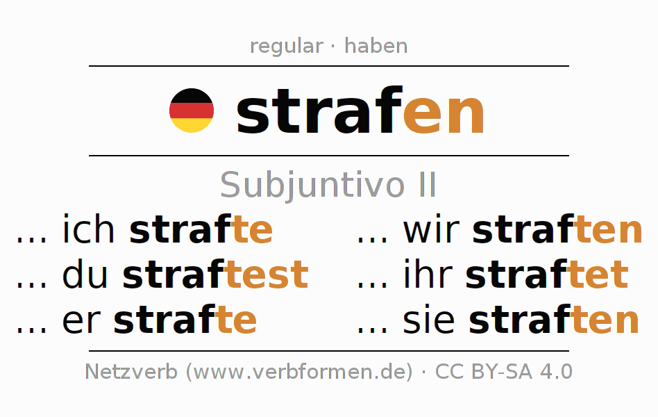 El verbo strafen, conjugado completamente en todas las personas y números gramaticales en Subjuntivo Pretérito.