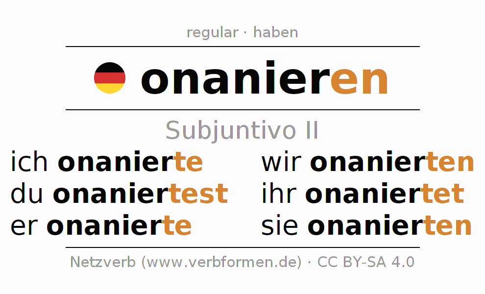 El verbo onanieren, conjugado completamente en todas las personas y números gramaticales en Subjuntivo Pretérito.