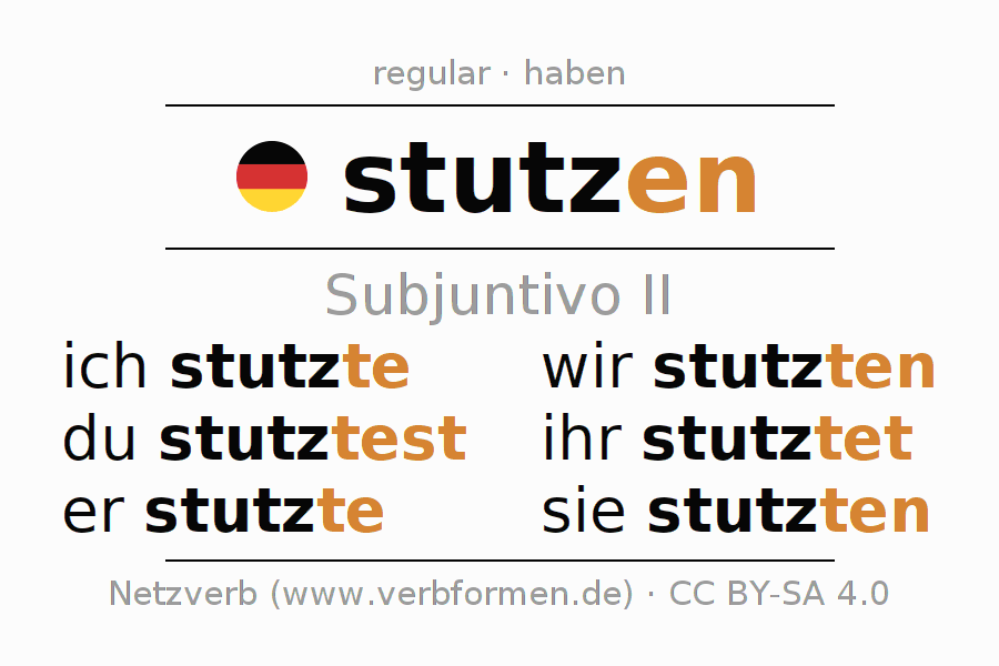El verbo stutzen, conjugado completamente en todas las personas y números gramaticales en Subjuntivo Pretérito.