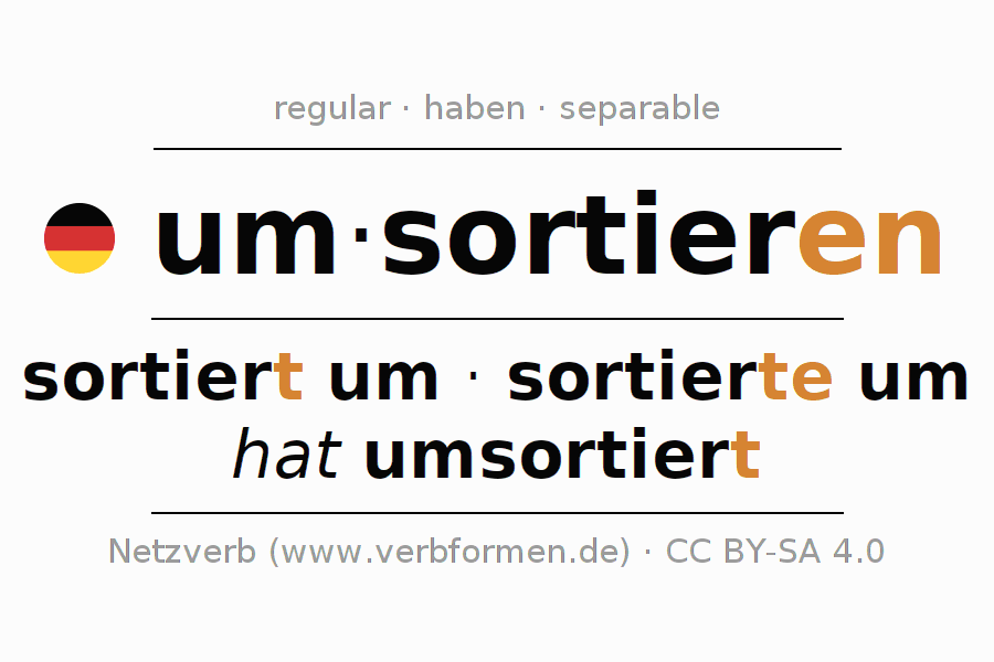 - ¿Cómo se conjuga umsortieren en Infinitivo?