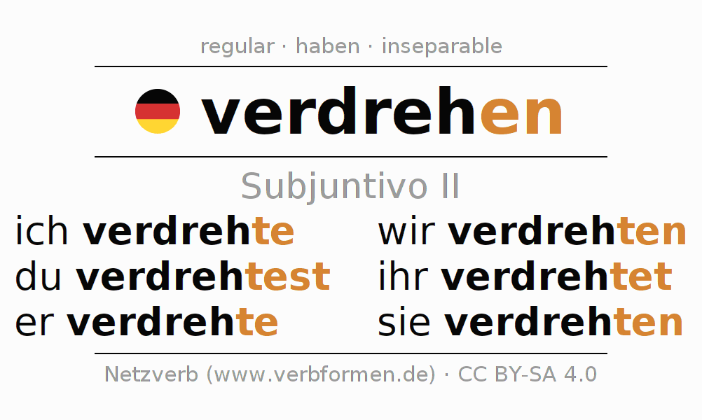 El verbo verdrehen, conjugado completamente en todas las personas y números gramaticales en Subjuntivo Pretérito.