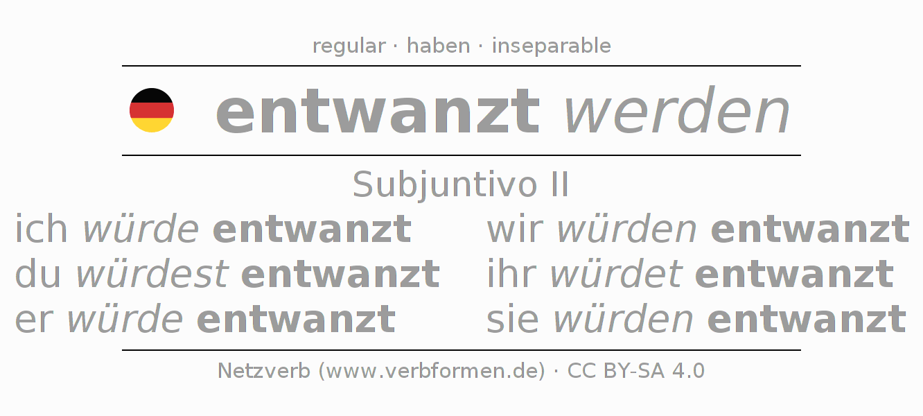 El verbo entwanzen, conjugado completamente en todas las personas y números gramaticales en Subjuntivo Pretérito.