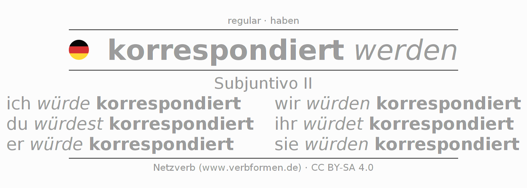 El verbo korrespondieren, conjugado completamente en todas las personas y números gramaticales en Subjuntivo Pretérito.