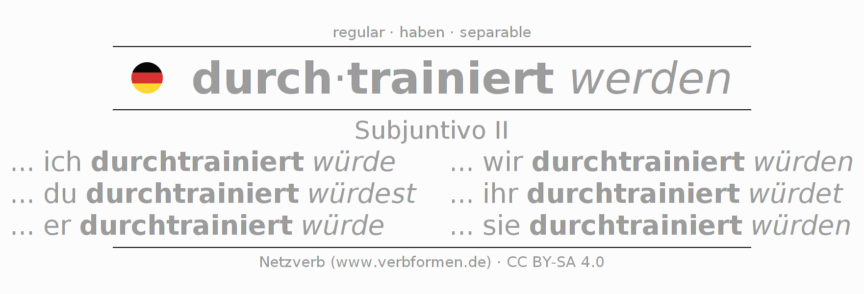 El verbo durchtrainieren, conjugado completamente en todas las personas y números gramaticales en Subjuntivo Pretérito.