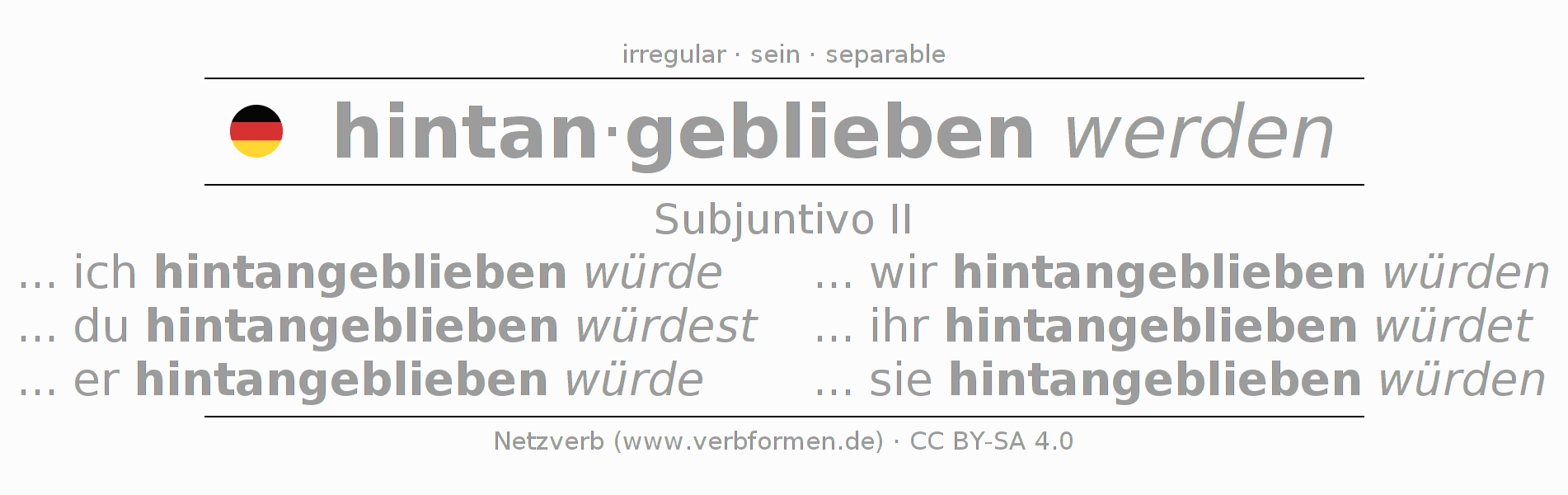 El verbo hintanbleiben, conjugado completamente en todas las personas y números gramaticales en Subjuntivo Pretérito.