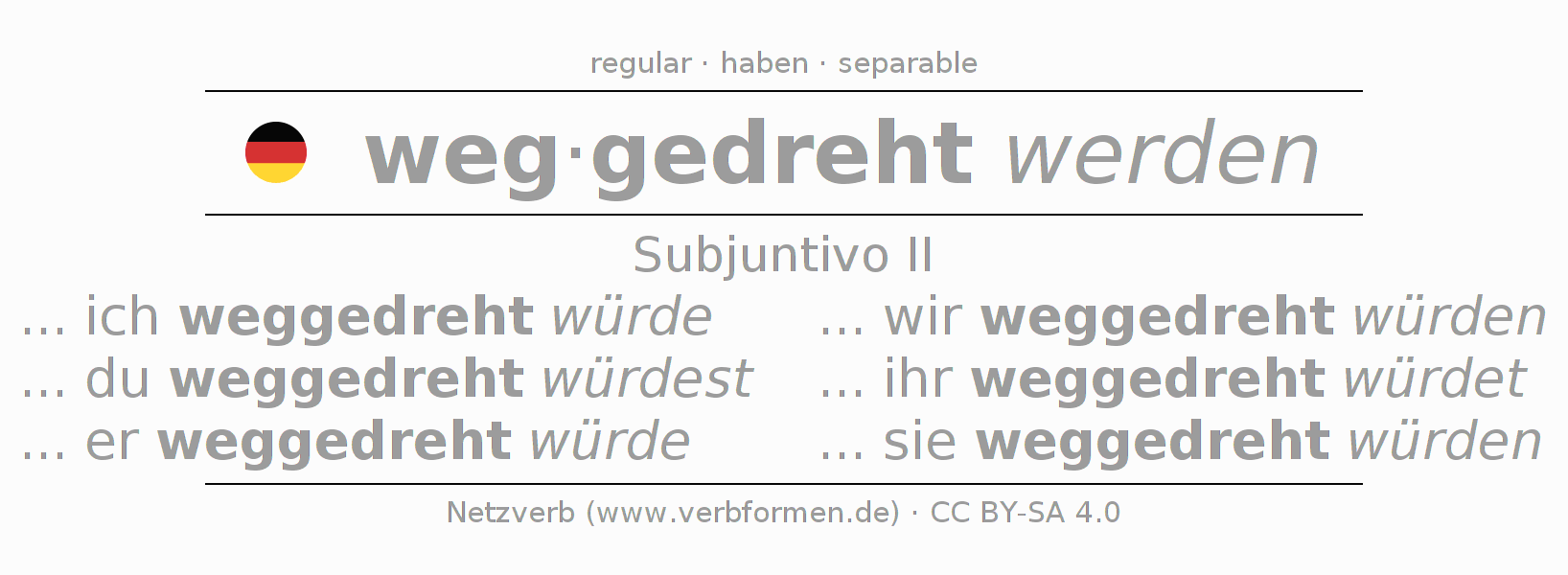 El verbo wegdrehen, conjugado completamente en todas las personas y números gramaticales en Subjuntivo Pretérito.